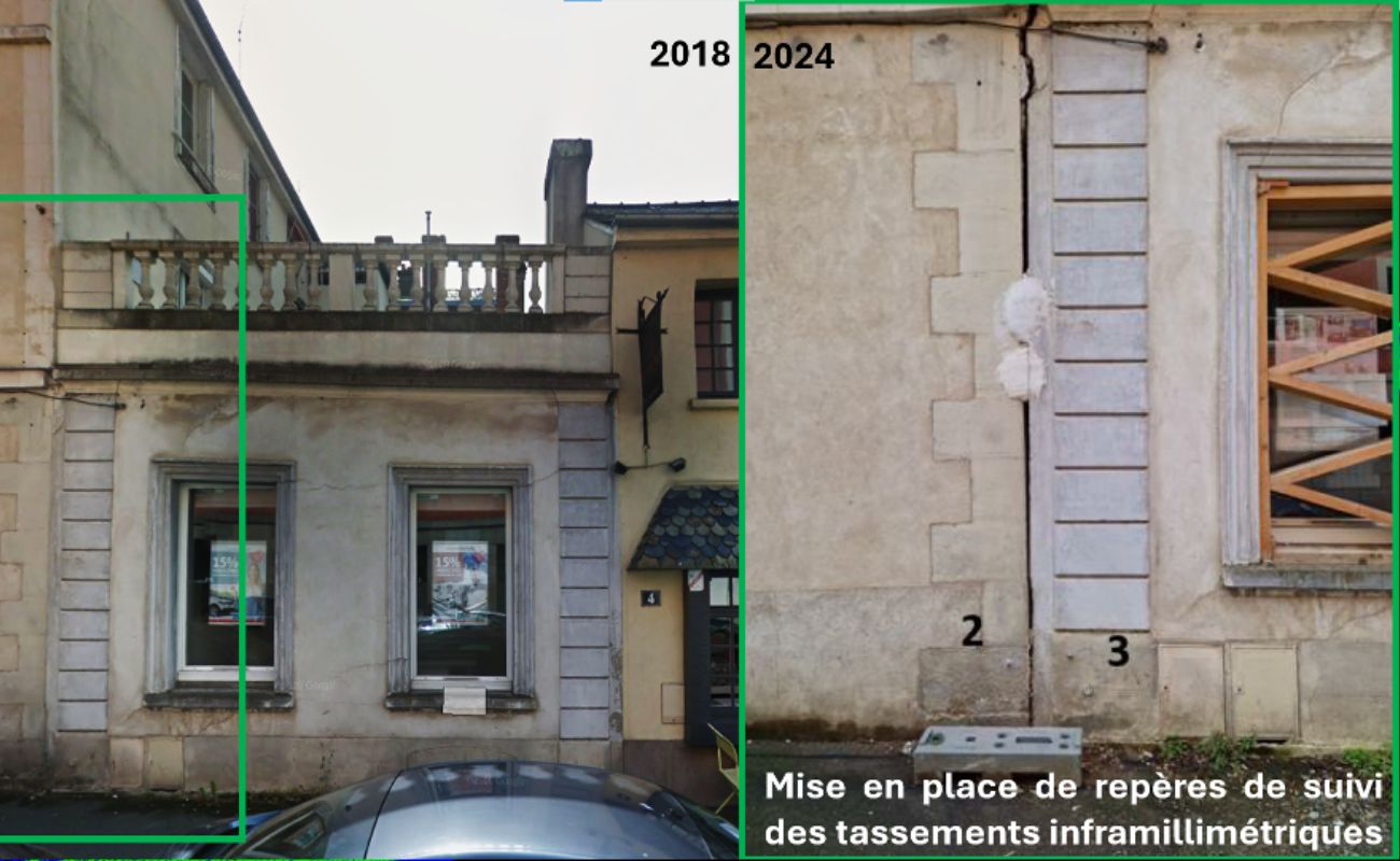 Travaux réalisés : Mise en place d’un réseau géodésique local, relevés d’auscultation sur plusieurs mois via niveau de haute précision, mesures de cisaillements 3D par fissuromètre à 0,2mm de précision sur une vingtaines de points.